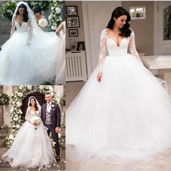 New Lace Wedding Dresses Sleeveless Lace Applique Sexy Back V Neck