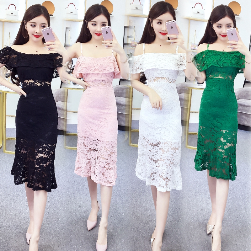 Off Shoulder Lace Black White Elegant Long Dresses Women Dinner