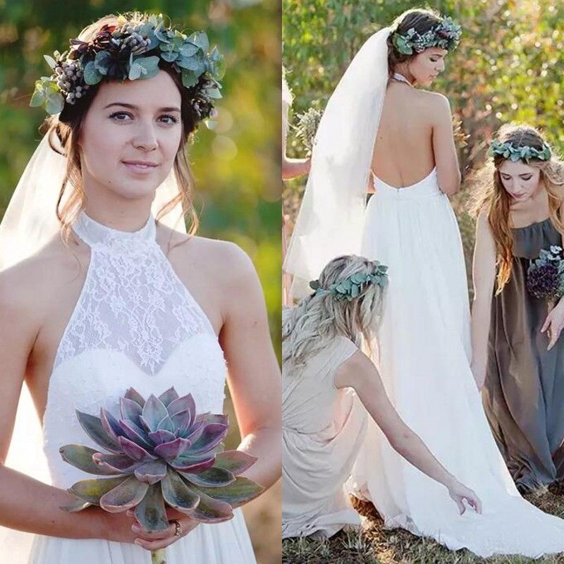 Discount Bohemian Wedding Dresses 2017 Sexy Halter Backless Lace