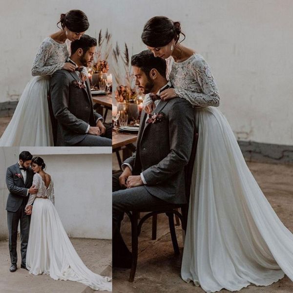 Discount Illusion Jewel Neck A Line Bohemian Wedding Dresses 2019