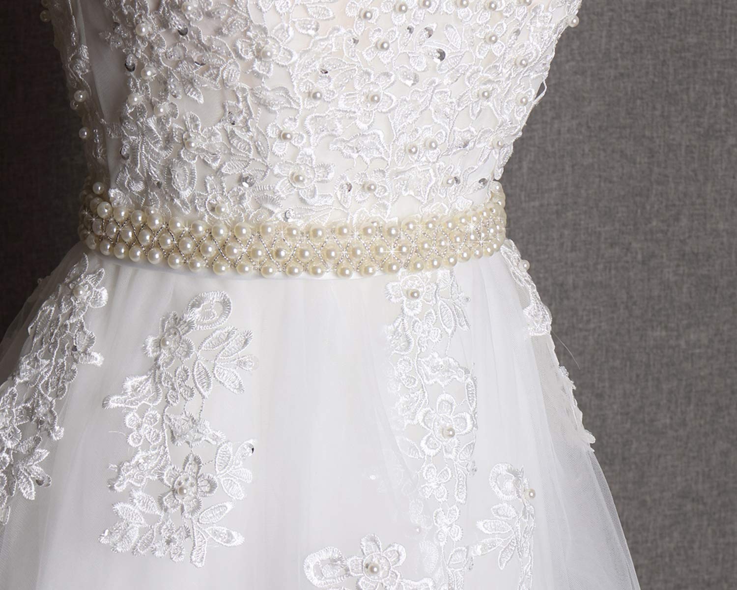 Pearl Bridal Sash Belt Lace Wedding Dress Belt Crystal Wedding