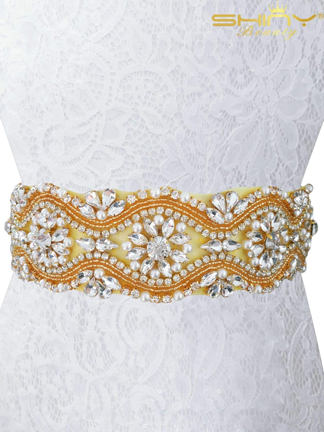 Amazon Com Shidianyi Wedding Dress Belts With Rhinestones Pearl