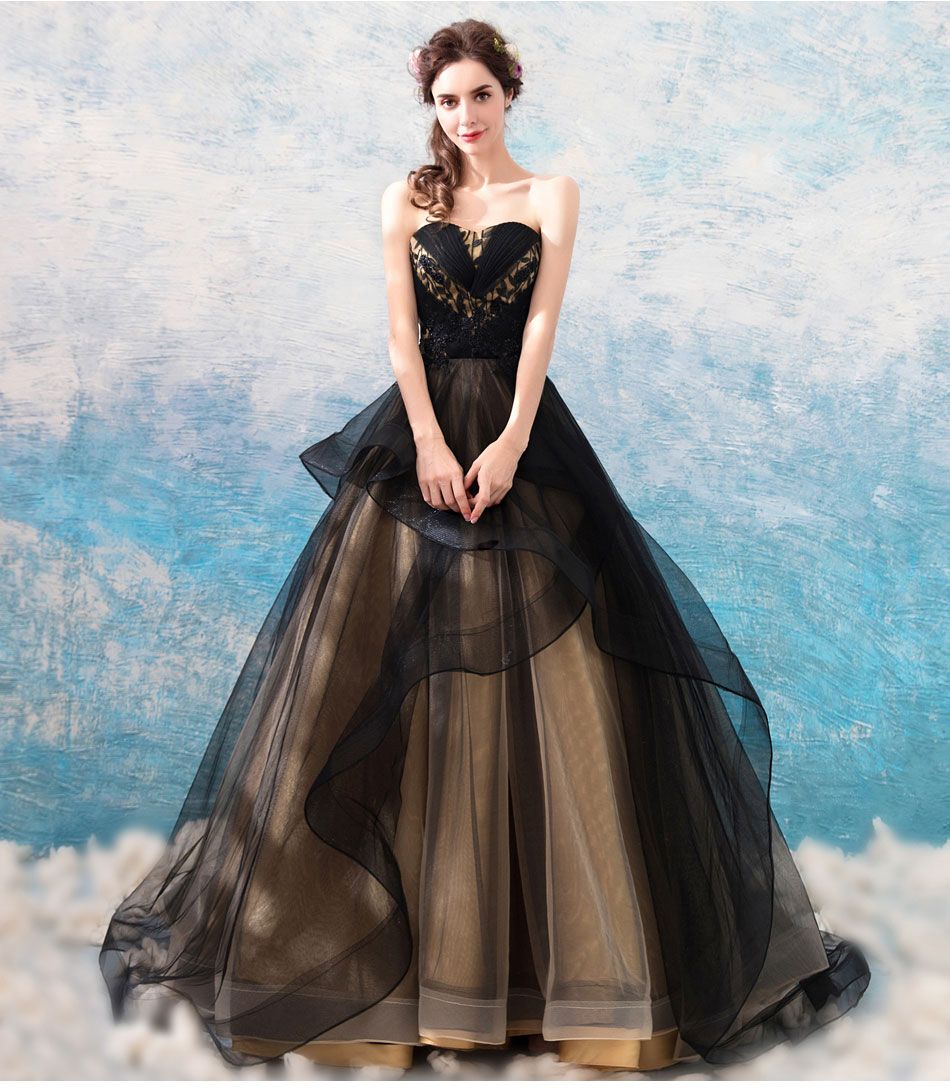 2019 Black Wedding Dress Strapless Tulle Wedding Dresses Bridal