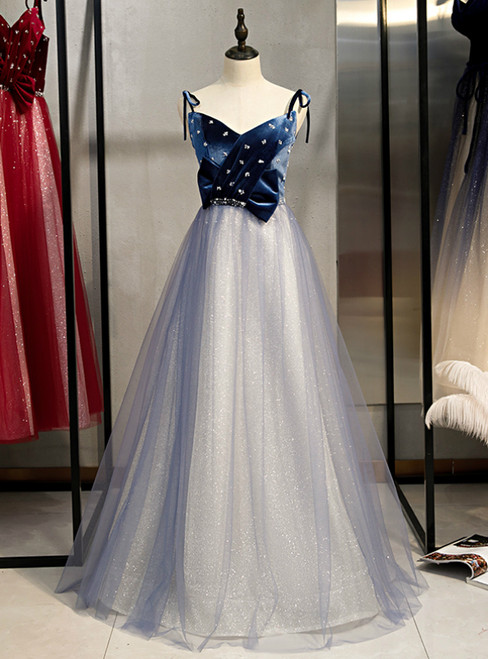 Simple Blue Tulle Long Prom Dress Blue Bridesmaid Dress