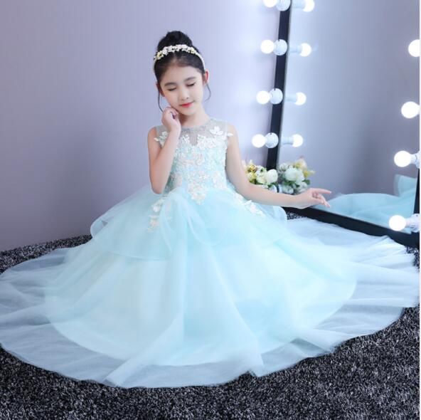 2019 2019 New Appliques Embroidery Lace Girl Wedding Dresses Blue
