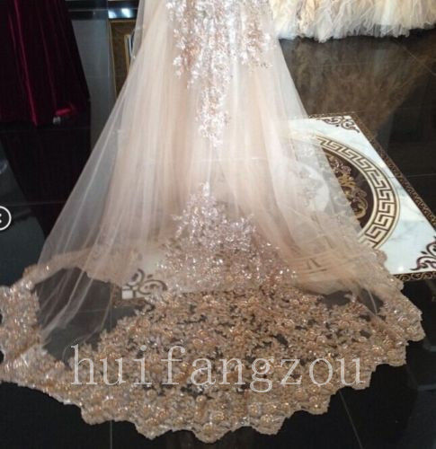 Champagne Beaded Wedding Dress Veil Tulle Farbic Veil06 Babaroni