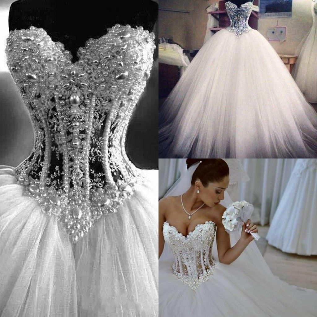 Corset Top Tulle Ball Gown Wedding Dress 2017 Sweetheart Glitter