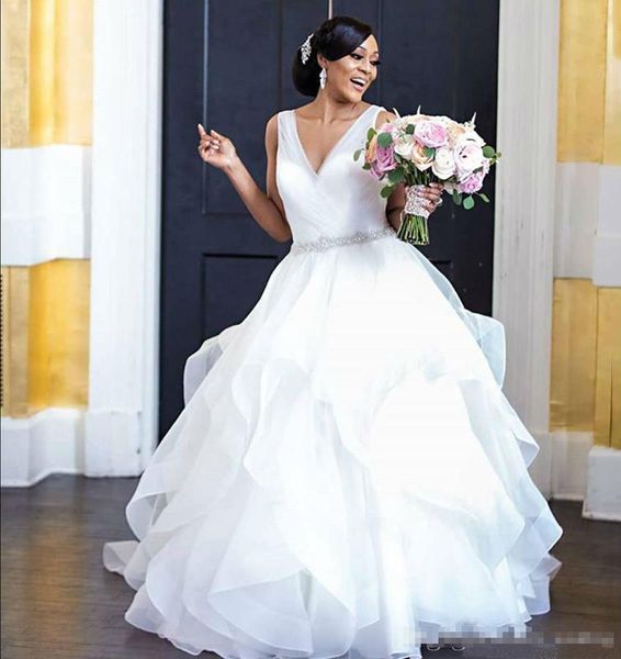 2019 Plus Size Wedding Dresses Elegant South African V Neck