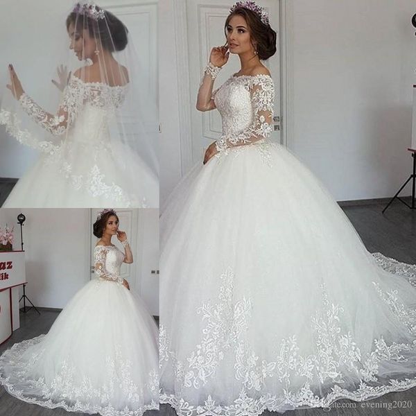 New Lace Ball Gown Wedding Dresses Off The Shoulder Long Sleeves