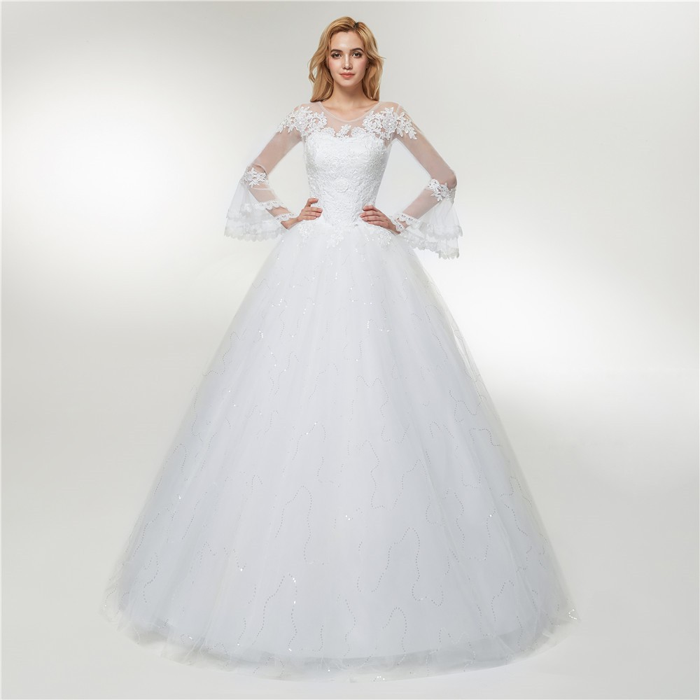 Lace Ball Wedding Dress Plus Size Bridal Gown Long Sleeves Plus