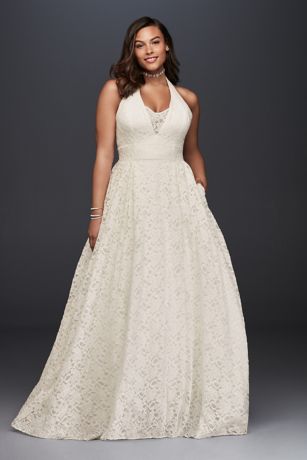 Plunging Lace Halter Plus Size Wedding Dress David S Bridal