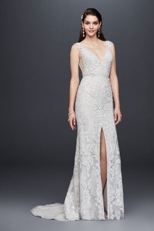 Plunging V Neck Beaded Illusion Wedding Dress David S Bridal