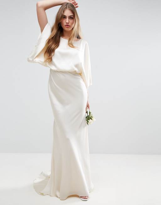 Asos Edition Kimono Sleeve Wedding Dress In Satin Asos