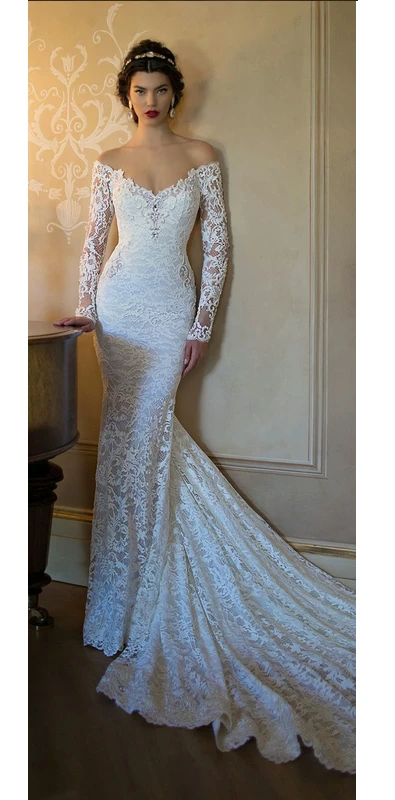 2019 Elegant Lace Off Shoulder Wedding Dress Long Sleeves
