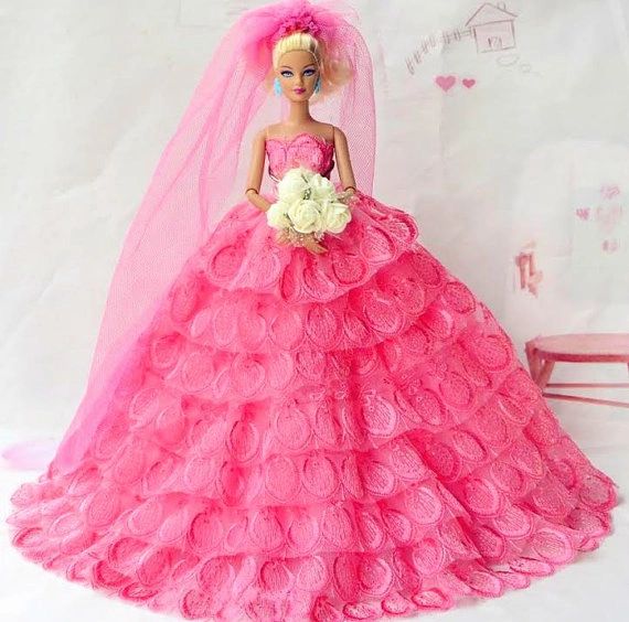 Barbie Doll Clothes Barbie Wedding Dress Floor Length Veil Bou