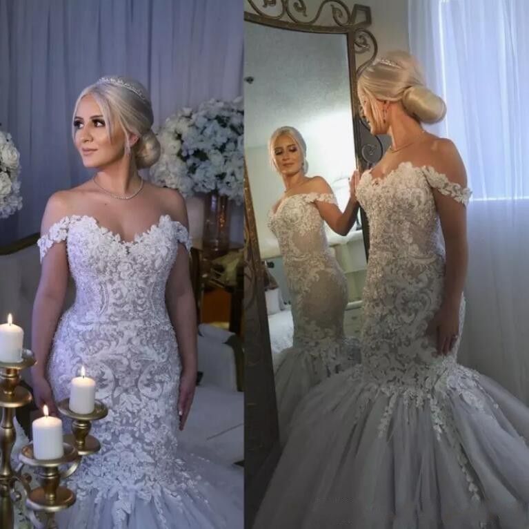 Off The Shoulder Mermaid Tulle Wedding Dresses Lace Appliques