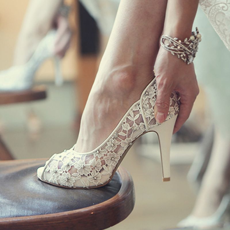 Beautiful White Lace Bridal Wedding Dress Shoes Peep Toe