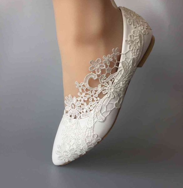 Women Wedding Shoes Waterproof Lace Bride Wedding Dresses Flat