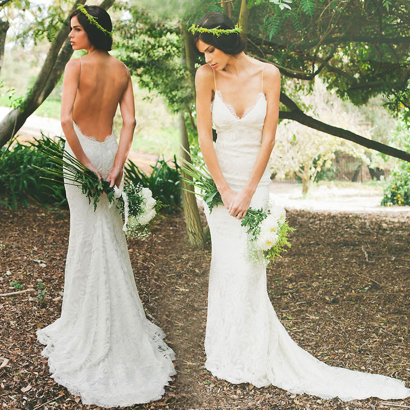2018 Sexy Spaghetti Lace Chiffon Open Back Wedding Dress Strap
