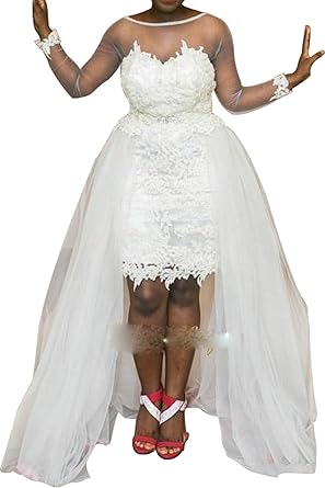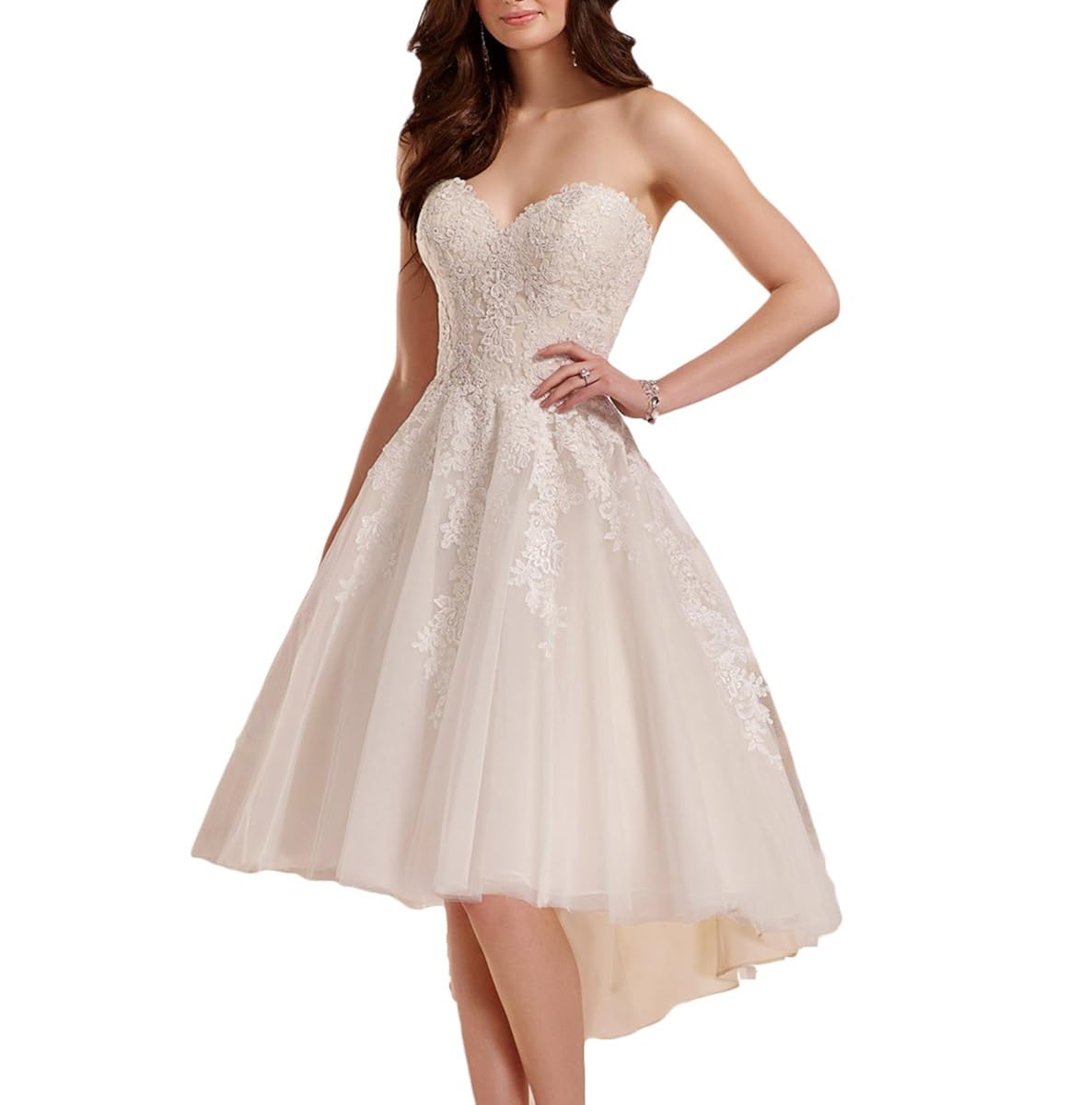 Dreamdress Women S Hi Lo Wedding Dresses Plus Size Lace Bridal