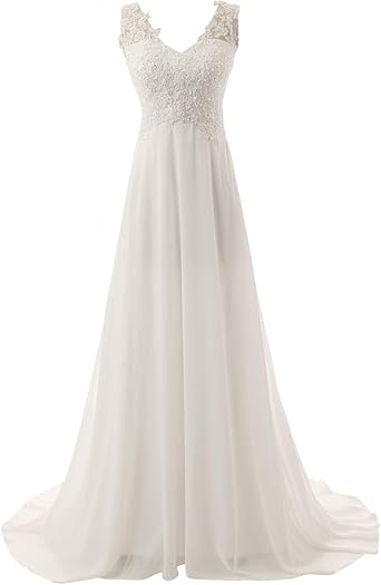 Yipeisha Women S Elegant Applique Lace Wedding Dress V Neck Plus