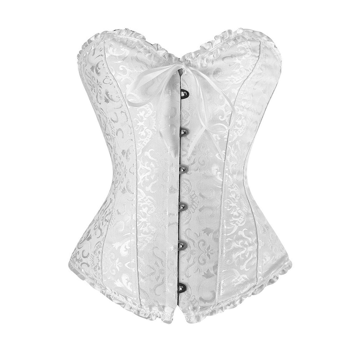 White Wedding Dress Corset Bridal Underwear Boned Overbust Basque Clas
