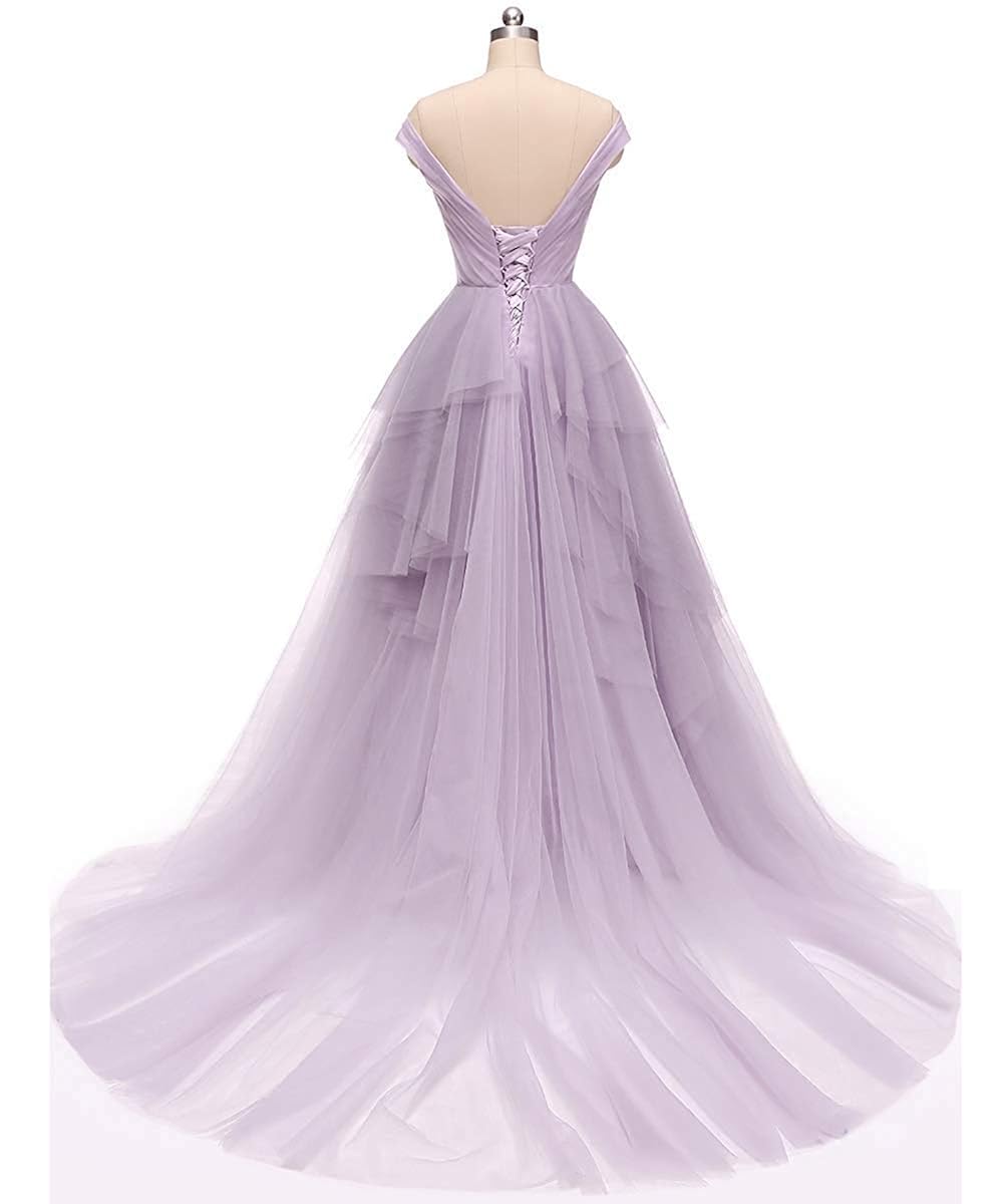 Custom Made Red Beaded Off Shoulder Tulle A Line Evening Dress