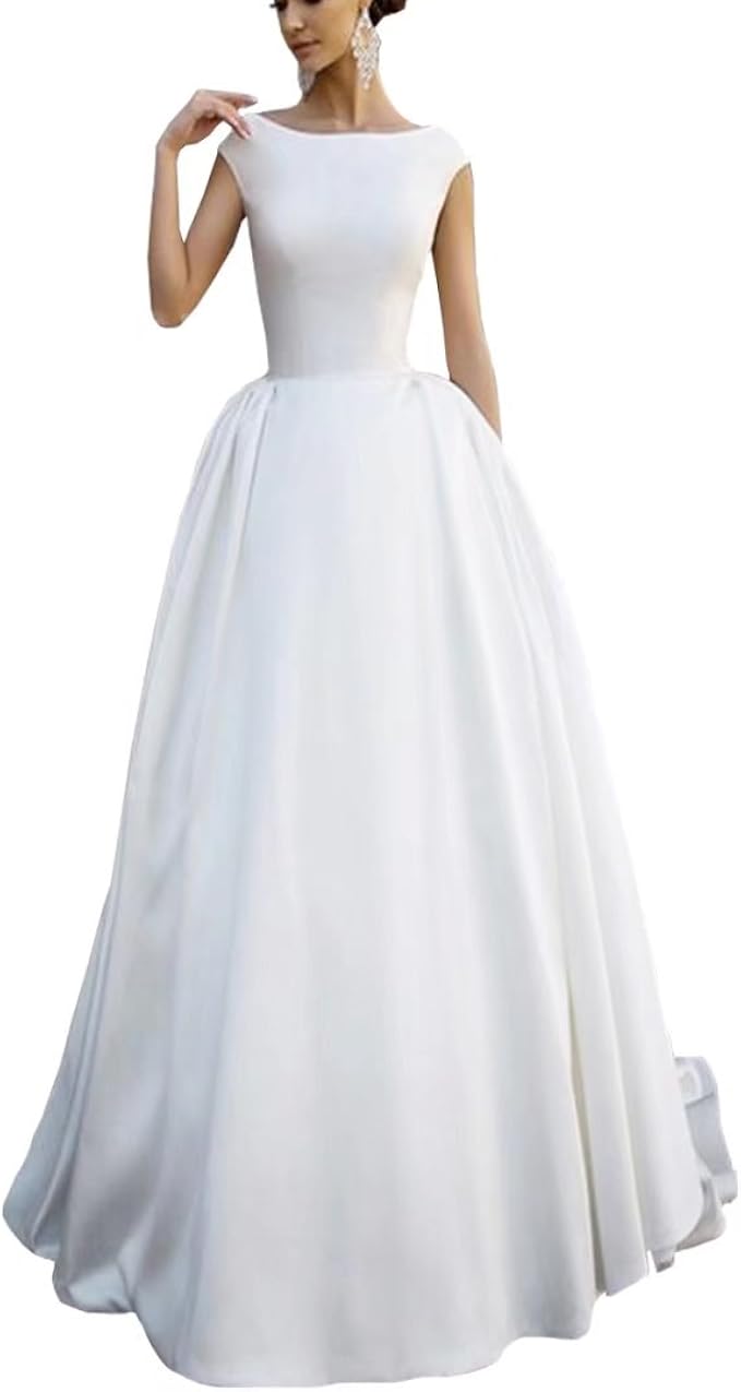 Dimei Women S Elegant A Line Satin Wedding Dress Cap Sleeve Ball