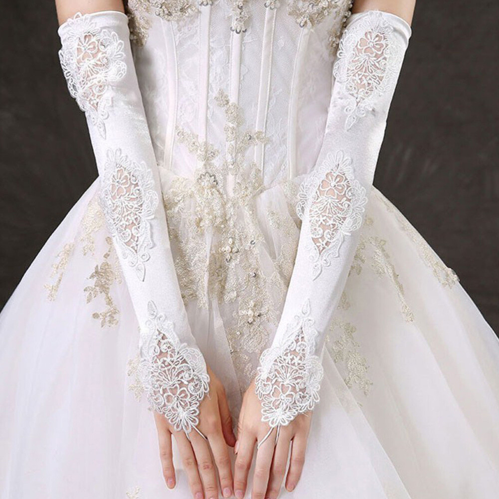 Wedding Dress Lace Gloves White Long Bride Etiquette Gloves Female