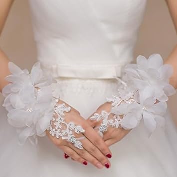 Satin Lace Gloves Wedding Gloves White Flower Lace Gloves Amazon