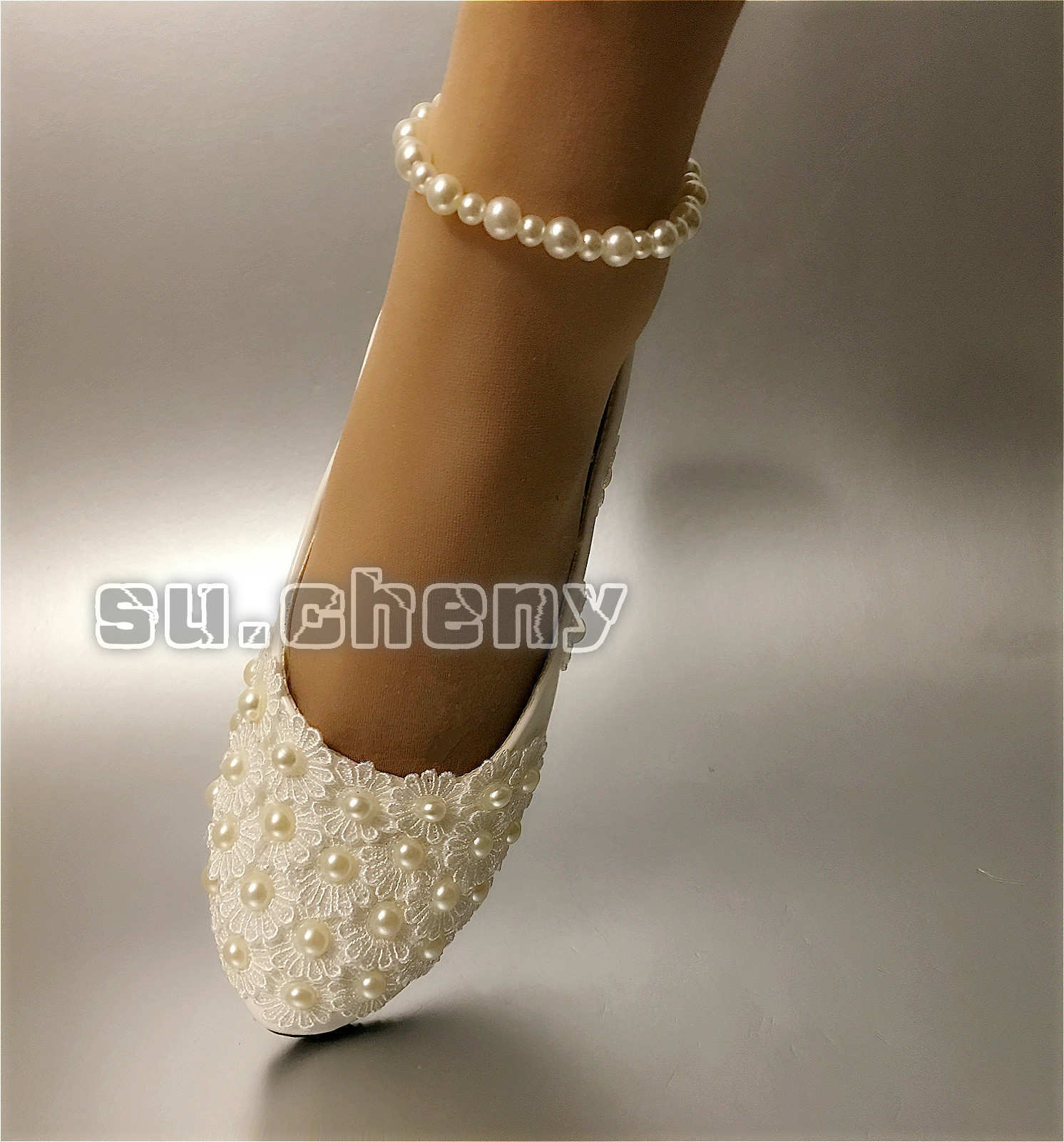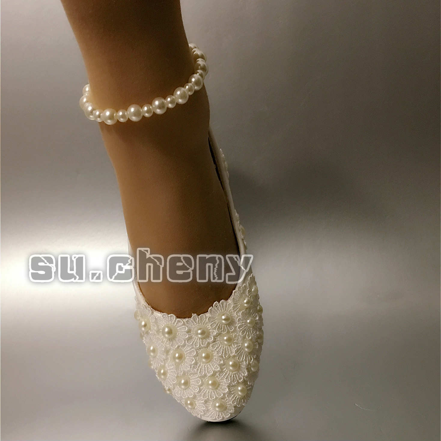 Su Cheny 3 4 Heel Satin White Ivory Lace Pearls Open Toe Wedding