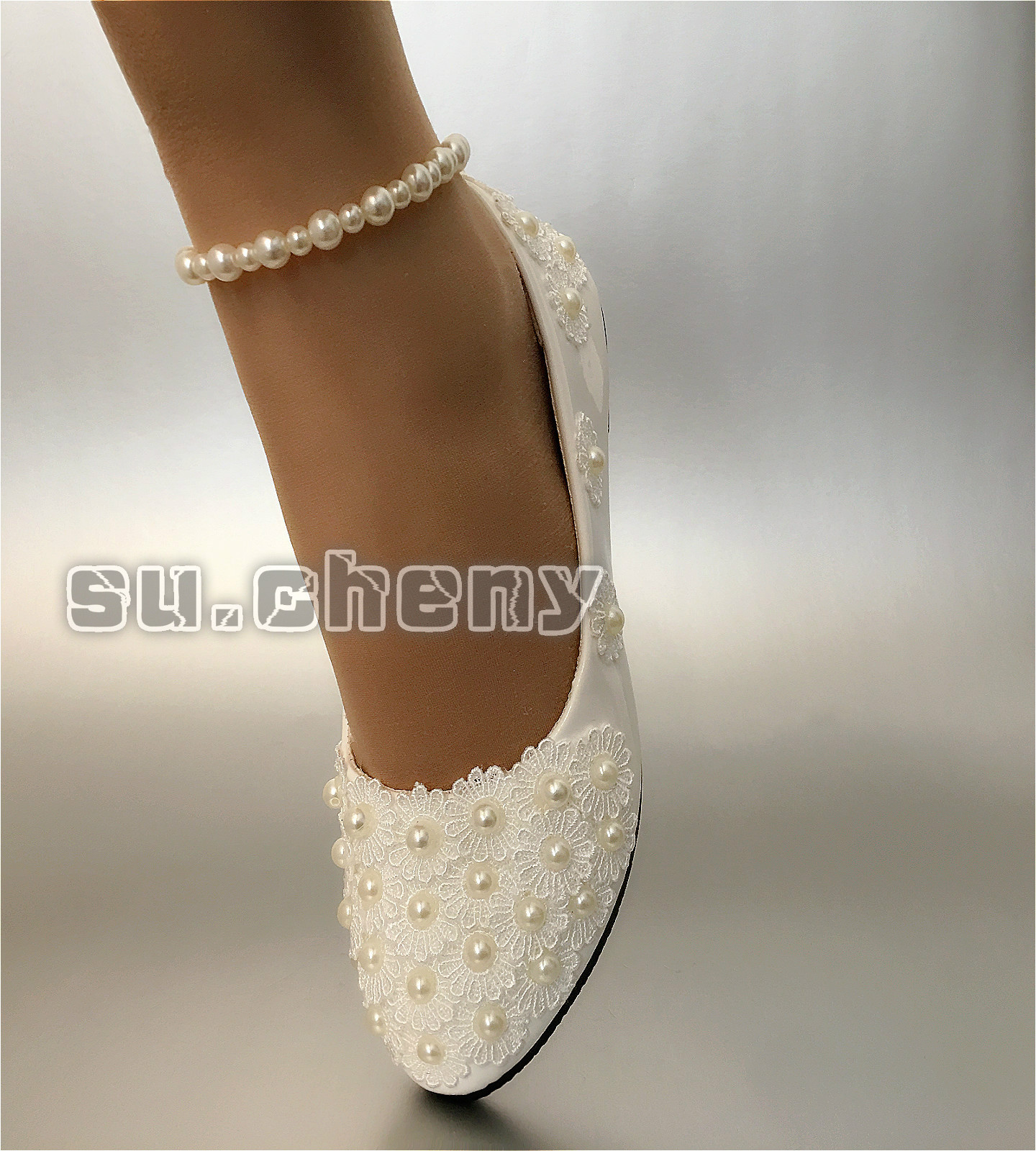 Amazon Com Sweet Women White Lace Low Heel Wedge Wedding Bridal