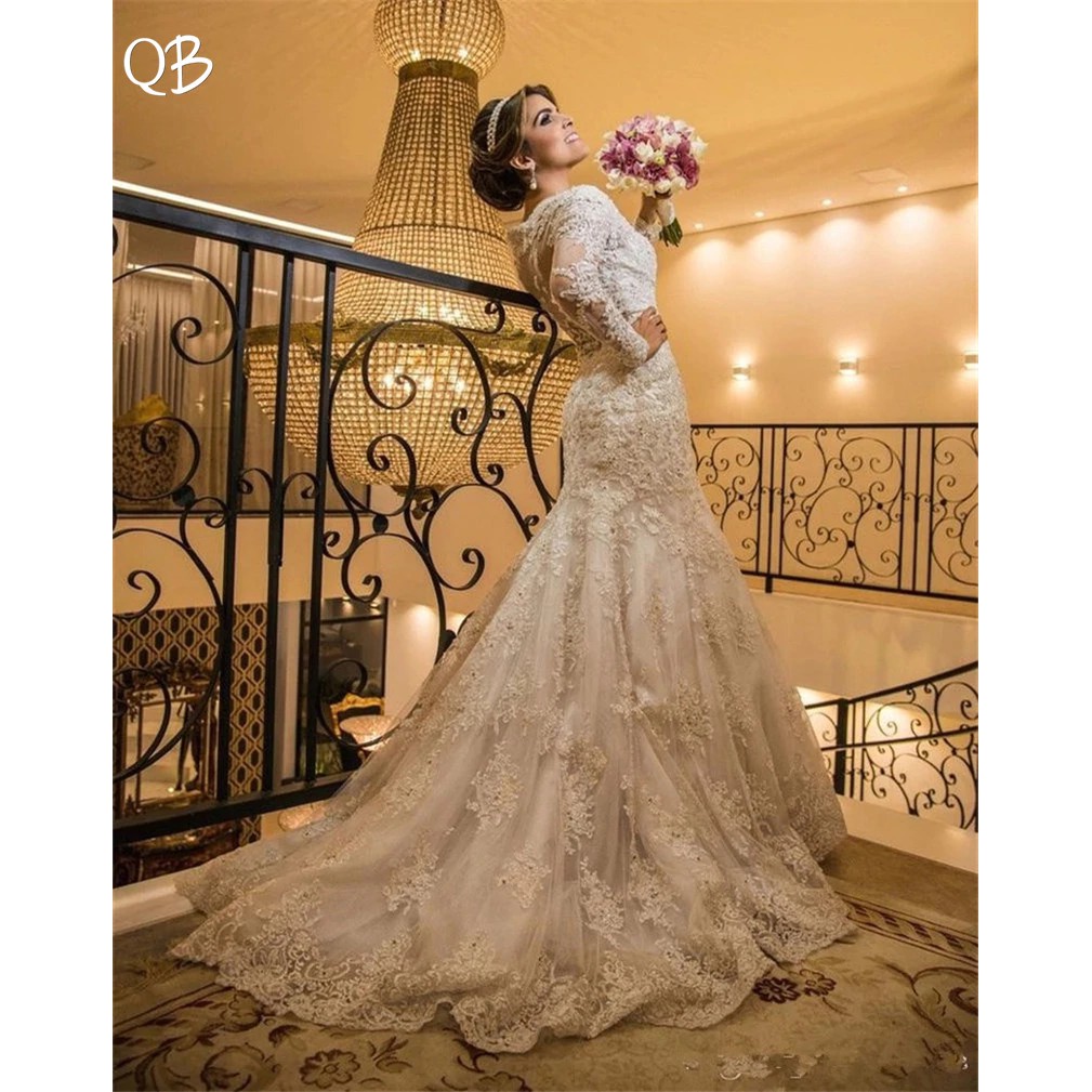 Custom Made Wedding Dresses 2019 Mermaid Long Sleeve Tulle Lace