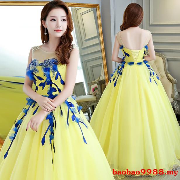 Women Yellow Wedding Dress Solo Performance Dress Large Dress