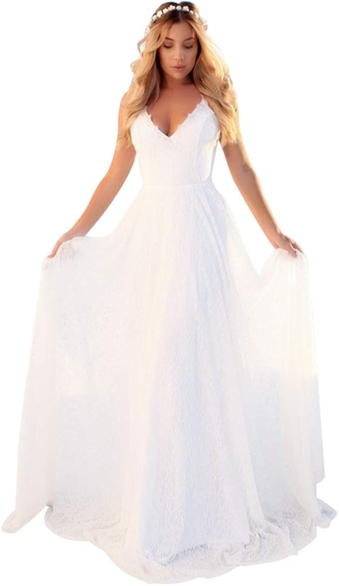 Women S Wedding Dress Flowy Vintage A Line Backless Lace V Neck