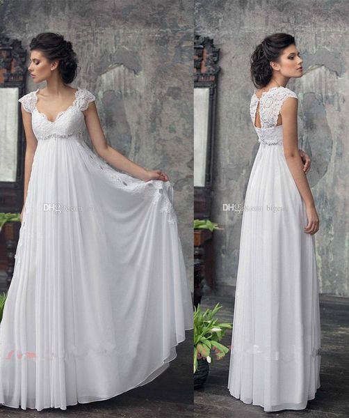 Lace Cap Sleeves Empire Waist Maternity Wedding Dress With Flowy