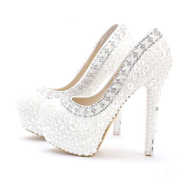 Bs026 Pearls Wedding Shoes High Heels Platform White Silver